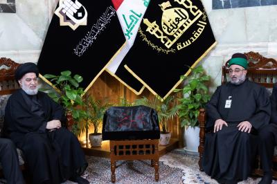 Le gardien légitime du sanctuaire saint Al Abbas (p); Sayeed Ahmed Al-Safi, a remis la bannière du dôme du sanctuaire d'Abi Al-Fadl Al-Abbas (que la paix soit sur lui) pour le mois sacré de Muharram 1446 AH au Secrétaire général, M. Mustafa Murtada Al Diaa Al-Din.