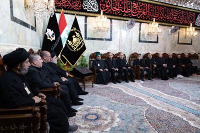 La cérémonie de remise de la bannière a eu lieu dans la salle de cérémonie à l'intérieur du Saint Sanctuaire en présence du secrétaire général adjoint, M. Abbas Moussa, des membres du conseil d'administration et de ses responsables.