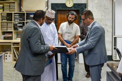Fueron recibidos por el Subdirector del Departamento del Museo Al-Kafeel, Sr. Shawqi Al-Mousawi, quien les acompañó en una visita guiada para ver el trabajo del personal del museo en las divisiones de almacenamiento, documentación, medios de comunicación y laboratorio, además de la sala de exposiciones del museo.