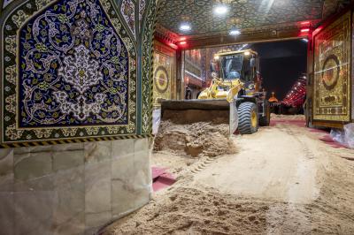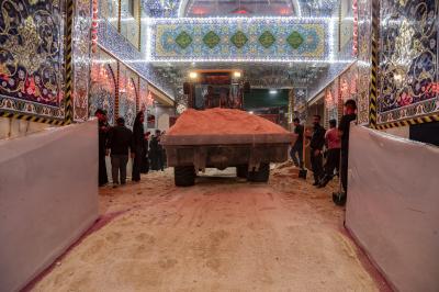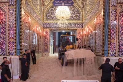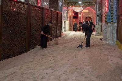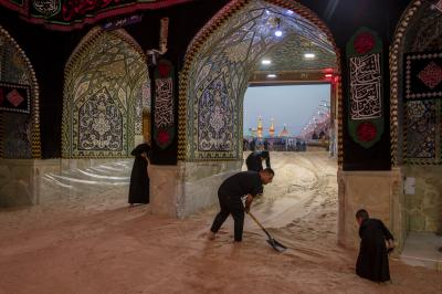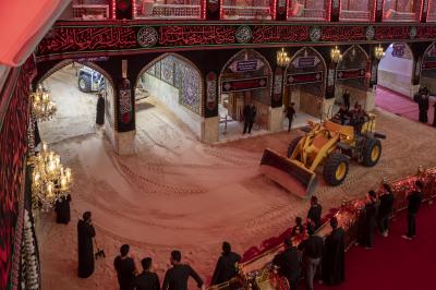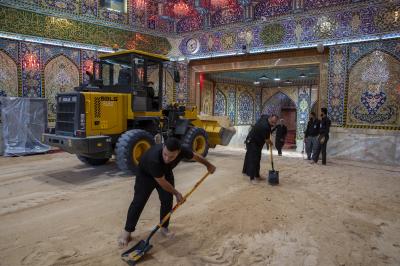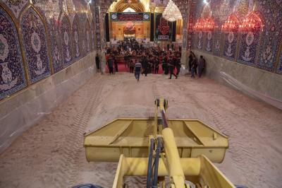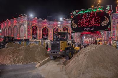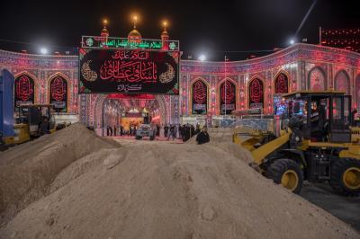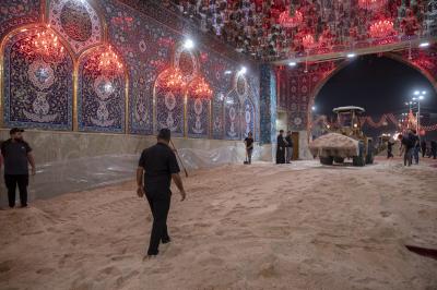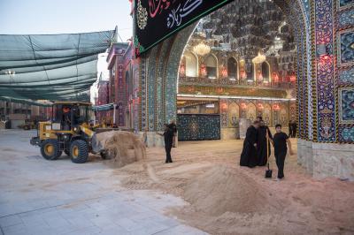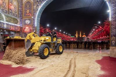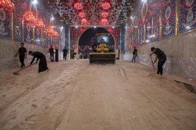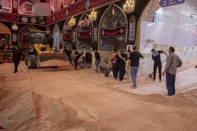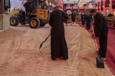 "Die Vorbereitungsarbeiten umfassten das Verteilen einer Schicht aus weichem Sand, das Abdecken mit roten Teppichen und das Aufstellen von Schildern, die die Ein- und Ausgänge des Heiligen Hofes kennzeichnen", fügte er hinzu. Die Abteilungen des heiligen Schreins von Aba al-Fadl Al-Abbass (Friede mit ihm) bemühen sich, den Besuchern aus dem In- und Ausland, die Aschura an den Schreinen von Imam Al-Hussein und seinem Bruder Aba al-Fadl Al-Abbass (Friede mit ihnen) begehen wollen, die besten Dienstleistungen zu bieten.