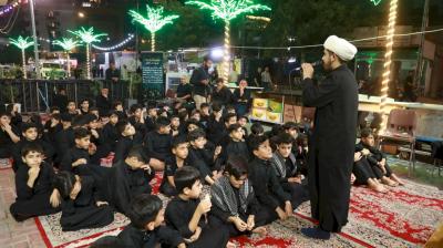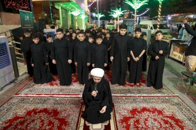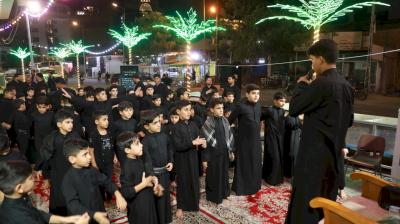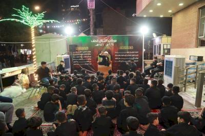 Matem alayı programının öne çıkan unsurları şunlar: Akşam ve yatsı namazlarının cemaatle kılınması, ardından Emirü'l-Kurra projesinin yeteneklerinden birinin Kur'an-ı Kerim'den ayetler okuması, sonra dini konferans ve yas meclisi, ardından Şeyh Hasan el-Cevadi tarafından sunulan akaid dersi ve fikri yarışma, sonra da sinezen meclisi. Günlük programa soğuk su, meyve suları, meyveler ve değerli ziyaretçilere hafif yemek ikramı gibi hizmet faaliyetleri de dahil ediliyor.