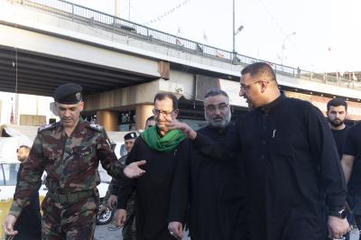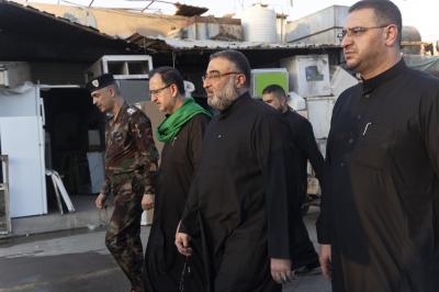 Muheshimiwa katibu mkuu amefuatana na mjumbe wa kamati kuu Sayyid Muhammad Ashqar, rais wa kitengo cha kulinda nidham Sayyid Hussein Shahristani, kamanda wa kikosi cha kulinda haram mbili tukufu Meja Jenerali Anwaru Abdul-Amiir pamoja na watumishi wa idara ya uhandisi.