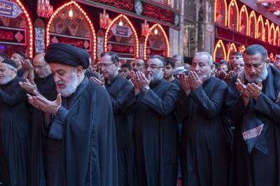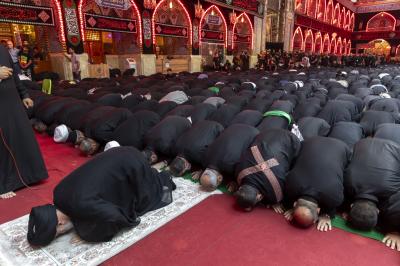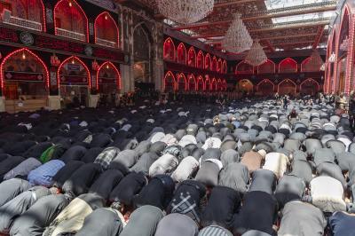 Mukaddes Hz. Abbas (a.s.) Türbesi'nin Şer'i Mütevellisi Seyyid Ahmed el-Safi cemaat ile birlikte öğle ve ikindi namazlarını kıldırdı., Muharrem ayının onuncu günü kılınan namaza Hz. İmam Hüseyin’in, ailesi ve arkadaşlarının (hepsine selam olsun) Aşura gününde şehit edilişlerinin anısını anmak için gelen yoğun bir ziyaretçi kitlesi iştirak etti.