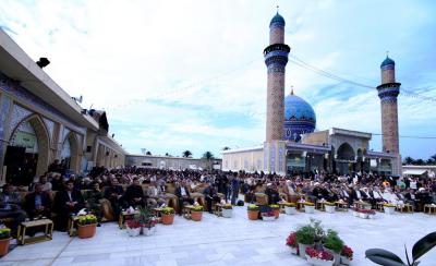 وتخلّل المحفل المبارك ومن هذا المكان الطاهر -مرقد زيد الشهيد الثائر(عليه السلام)- كلمةٌ لمدير المعهد الشيخ جواد النصراوي شكر فيها أهالي المدينة على حفاوة الاستقبال والحضور الكبير والتفاعل المميّز في المحفل القرآنيّ، مُبيّناً منزلة الشهداء والدور الكبير الذي بذله المجاهدون في دفاعهم المقدّس عن الأرض والعرض والمقدّسات، مُبيّناً: "أنّهم استلهموا هذا الثبات من سيرة أهل البيت(عليهم السلام) وجهادهم الطويل وعلى رأسهم ثبات الإمام الحسين(عليه السلام) وأصحابه الكرام"، وإنّ ذكرى وفاة أمّ البنين(عيها السلام) لم تغب عن كلمته وموقفها في الصبر والثبات مبيّناً: "أنّها قدّمت أربع أبناء دفاعاً عن الدين المحمدي وديمومة بقائه"، مُوضّحاً: "أنّ يومنا هذا أخرج لنا الكثير من الأمّهات اللاتي جعلن من تلك المرأة العظيمة قدوةً لهنَّ وقدّمنَ أبناءهنَّ لساحات العزّ والدين".