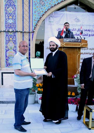 كما كانت هناك كلمةٌ للسيد منتظر سليم مسؤول معهد القرآن الكريم فرع بابل والتي بيّن خلالها جملةً من نشاطات المعهد المختلفة وعطائه القرآنيّ الكبير الذي شمل معظم مناطق محافظة بابل، "وأنّ الجميع بات يستفيد من هذا النبع القرآنيّ المبارك فقد شمل الصغار والكبار والرجال والنساء بعطائه وخدماته القرآنية المختلفة".