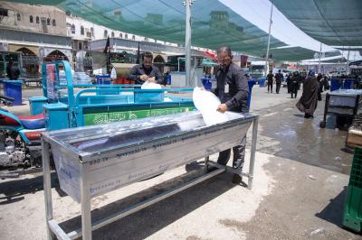 وأضاف أنّ "إنتاج المعملَين من الثلج البلوري في زيارة عاشوراء بلغ 33 ألف كيس بوزن 17 كيلو غرام للكيس الواحد، إذ أنتج معمل العلقمي 18 ألف كيس ومعمل الفرات 15 ألف كيس، أما معمل ثلج الكفيل الخاص بقوالب الثّلج الاعتيادي التابع لشركة الكفيل للاستثمارات العامّة فقد بلغ إنتاجه 15600 قالب ثلج في الزيارة".