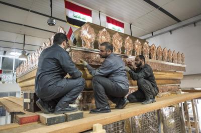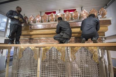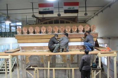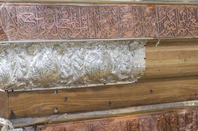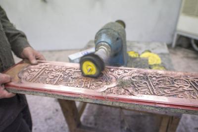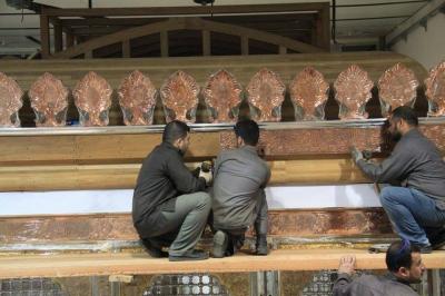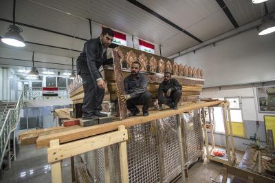 تتواصل الأعمال الخاصّة بشبّاك أبي الفضل العباس(عليه السلام) ويوماً بعد يوم تشهد تقدّماً واضحاً وملموساً وظاهراً للعيان وبخطّيها التصنيعيّ الخاصّ بتصنيع ما تبقّى من أجزاء، والخط الآخر التركيبيّ أي بتركيب ما يتمّ تصنيعُهُ على الهيكل الخشبي، ومن الأجزاء التصنيعية التي بوشر بها مؤخّراً والتي تتماشى مع قطعٍ أخرى هي الكتيبة القرآنية التي تقع في الجزء العلويّ من الشبّاك وتحيط به من جهاته الأربع، وهي واحدةٌ من ثلاث كتائب أو أشرطة، فالشبّاك الشريف يحتوي على كتيبةٍ شعريةٍ وكتيبتين قرآنيتين يفصل بينهما جزءٌ يسمّى بـ(الكلوي) ويعتليها إطارٌ فضيّ.