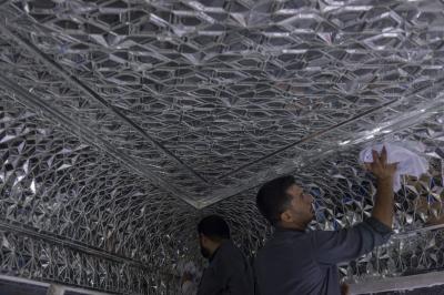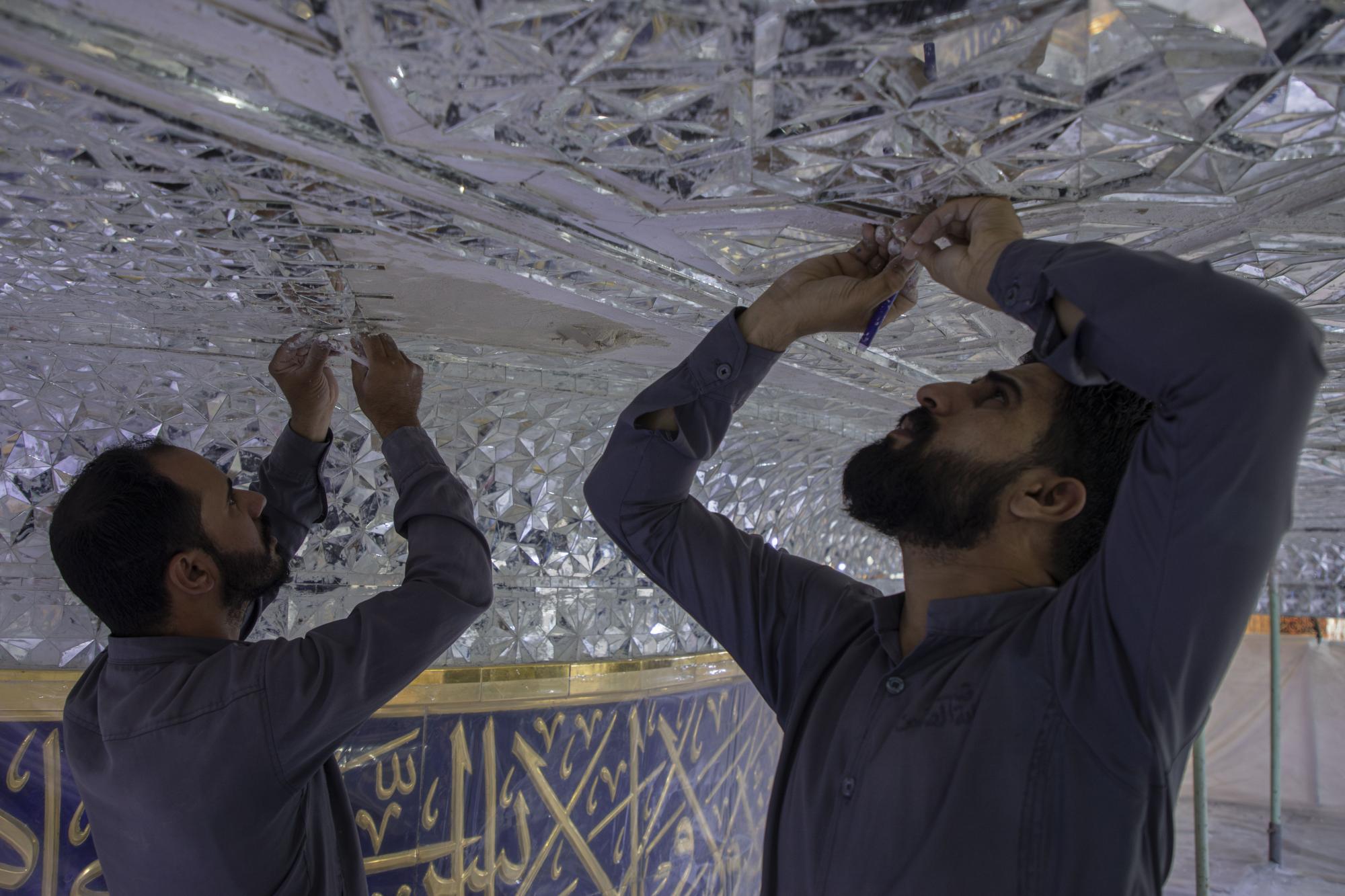 يواصل قسم الصيانة والإنشاءات الهندسية في العتبة العباسية المقدسة، أعمال تركيب الزجاج في الطارمة المطلة على مرقد أبي الفضل العباس (عليه السلام).