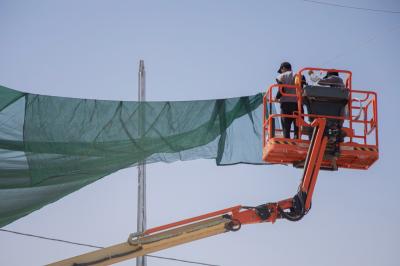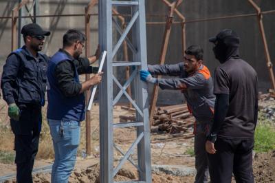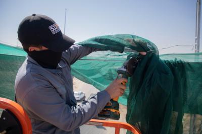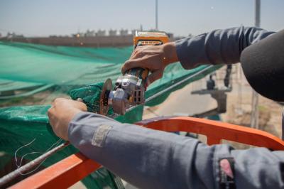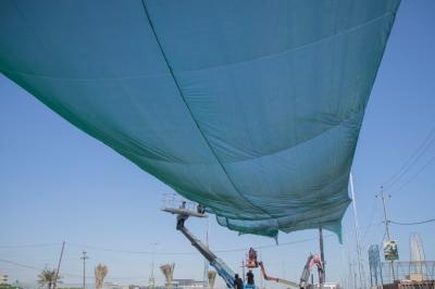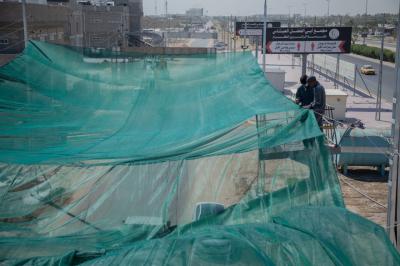 À son tour, l'ingénieur Karar Ibrahi Muhammad du département de maintenance a déclaré : « La superficie à couvrir est estimée à plus de 50 000 mètres carrés, car la première phase des travaux comprenait le creusement des bases et l'installation des colonnes, tandis que la seconde comprenait le raccordement des fils portent le tissu, et les travaux se poursuivront pendant environ 20 jours.