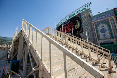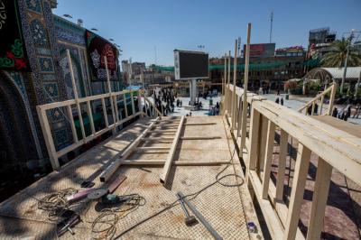 روضہ مبارک حضرت عباس(ع) کے شعبہ برائے فنی صنعت و حرفت کے عملے نے ایامِ اربعین کے دوران زائرین کی نقل وحرکت میں آسانی کے لیے ما بین الحرمین کے ایریا میں فولادی پل کی تنصیب کا کام شروع کر دیا ہے۔