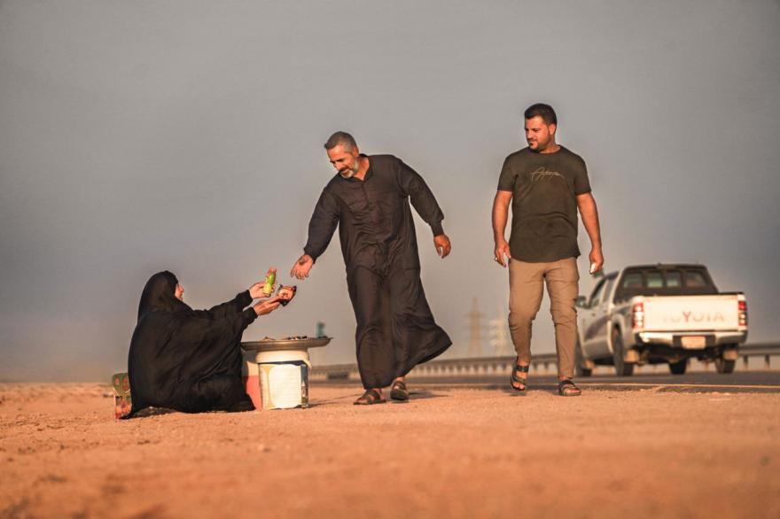 تُعد أم جواد وجبات بسيطة من اللبن والماء والعصائر، وتوزعها على الزائرين، وهي تردد الدعاء خاشعة، ولا تقتصر خدماتها على الطعام فقط، بل إنّها ترفع يديها بالدعاء للزائرين، وتدعوهم أن يهدوا إليها خطوات في طريق الإمام الحسين (عليه السلام).
