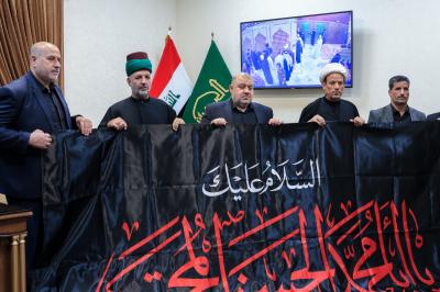 Mukaddes Hz. Abbas (a.s.) Türbesi Halkla İlişkiler Bölümü'ne bağlı İç İlişkiler Birimi sorumlusu Seyyid Nafi el-Menkuşi şunları söyledi: "Mukaddes Hz. Abbas (a.s.) Türbesi heyeti, Safer ayının yedinci gecesinde Hz. İmam Hasan el-Mücteba'nın (a.s.) şehadet yıldönümünü anmak amacıyla Hz. İmam Hasan'ın (a.s.) bayrağını takdim etmek üzere Hz. Askeriyeyn (a.s.) ve Hz. Kazımeyn’in (a.s.) Mukaddes Türbelerini ziyaret etti."