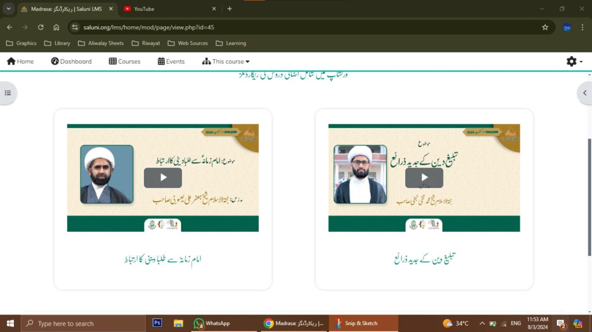 وقال ممثّل العتبة العبّاسية في باكستان الشيخ ناصر عباس نجفي: إنّ "العتبة العبّاسية نظّمت سلسلة من البرامج الثّقافية الإلكترونيّة للناطقين باللّغة الأردية وذلك بهدف توفير التدريب التعليمي والديني للشباب، وطلاب المدارس والكليات، إضافة إلى طلاب الحوزة العلميّة".