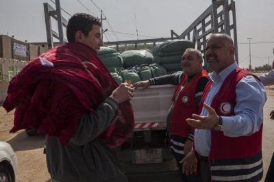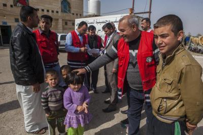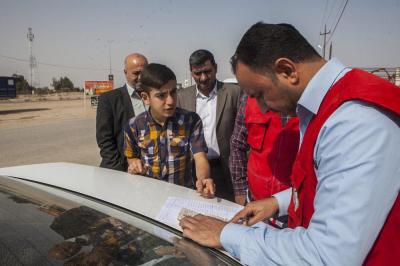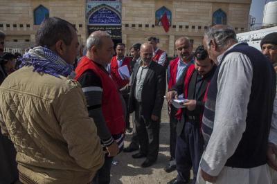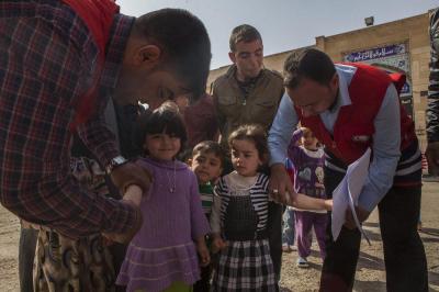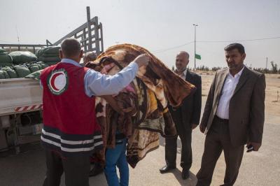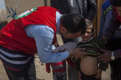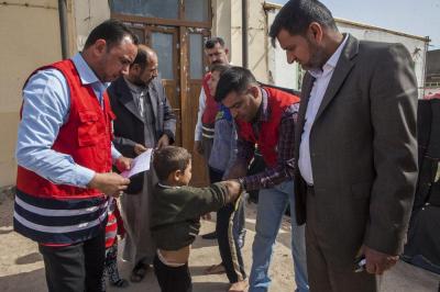 وتابع السيد نافع: "تمّ تسيير فرق طبية جوالة جُهّزت بعجلات إسعاف مزوّدة بجميع المستلزمات الطبية التي تحتاجها الحالات الطارئة، إضافةً الى رفدها بالكوادر الطبية والتمريضية من كلا الجنسين تعمل على متابعة الأحوال الصحية والطبية، وتضمّ أيضاً فرقاً لتلقيح الأطفال، بالإضافة الى تنفيذها نشاطات أخرى منها في جانب التوعية الصحية والرقابة الصحية ورصد حالات التدرّن ومكافحة الحشرات والقوارض، وقد تمّ اتّخاذ كافة الإجراءات الوقائية لمنع تفشّي الأمراض والسيطرة على الأمراض الانتقالية وتحصين العوائل من خلال اللقاحات التي تشمل الأطفال والنساء والرجال ضدّ مختلف الأمراض، وكذلك فحص المرضى ومعالجتهم وإحالة الحالات الحرجة الى المستشفيات العامة، وتقوم اللجنة كذلك بتوفير ملابس داخلية وأغطية جديدة غير التي يستخدمها الأشخاص المصابون".