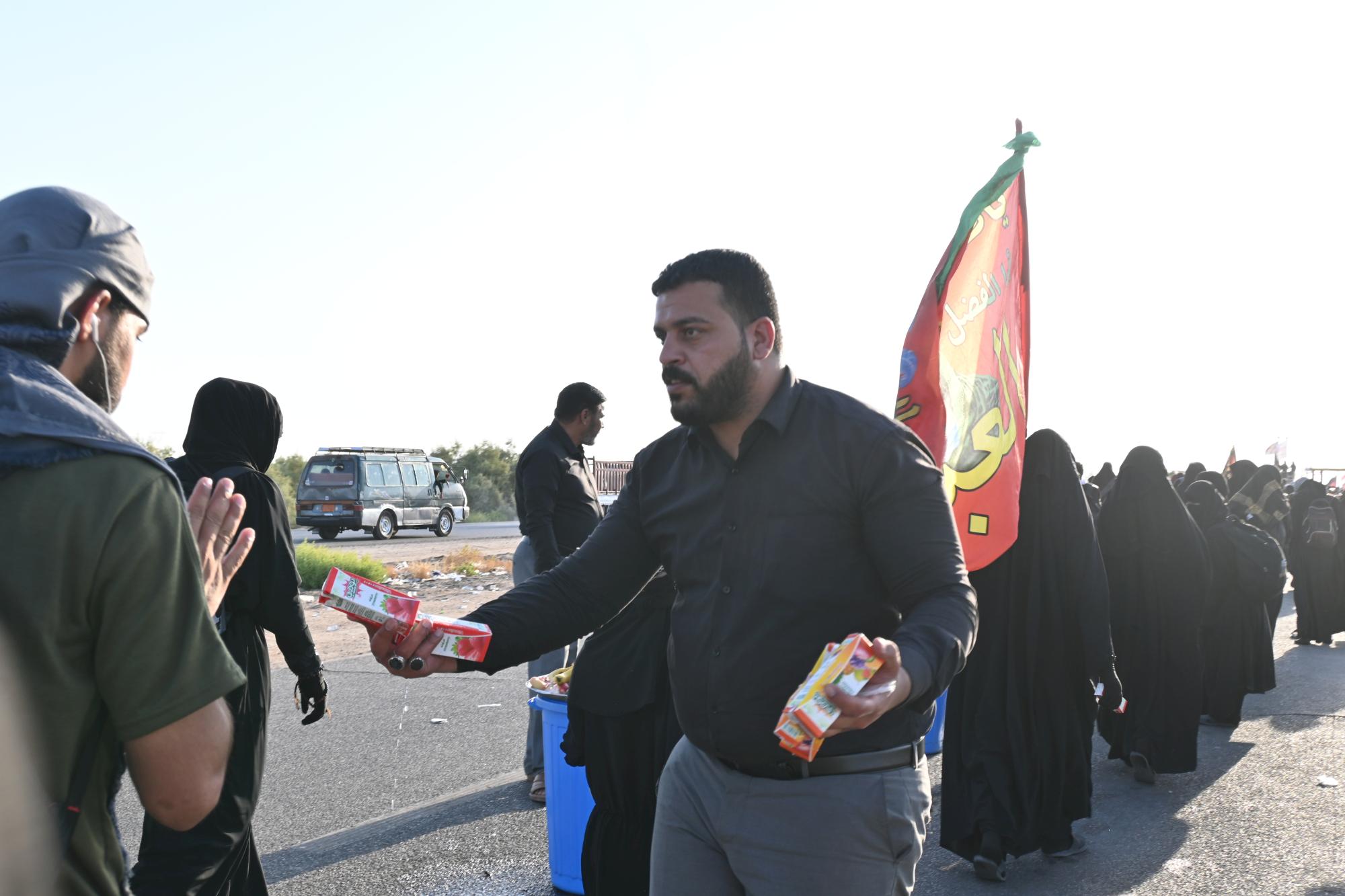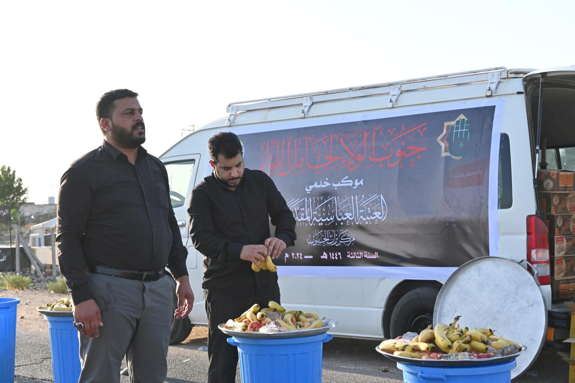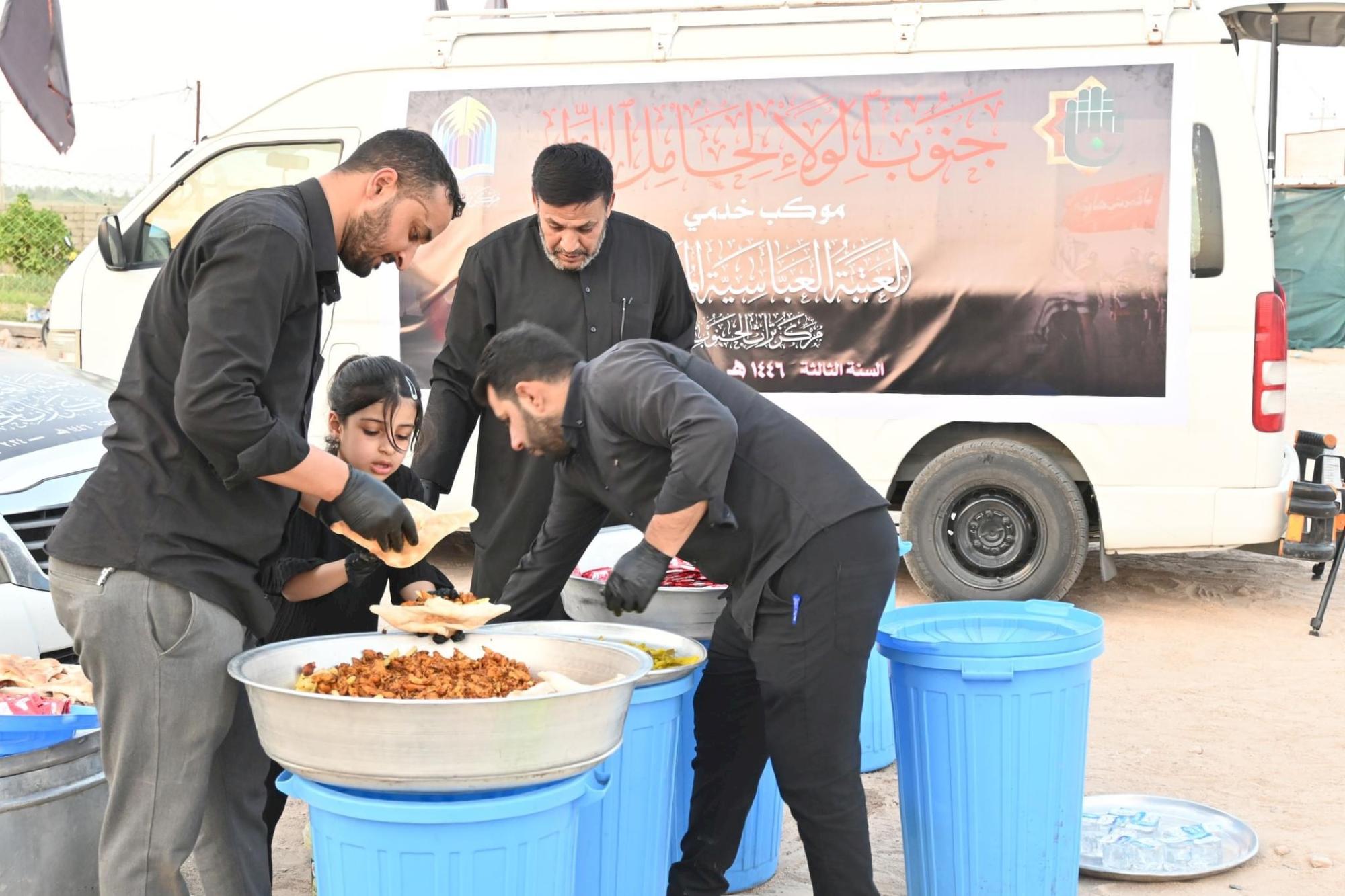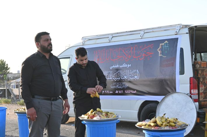 ويشارك موكب جنوب الولاء لحامل اللواء للسنة الثالثة على التوالي، بتقديم خدماته المتنوّعة للزائرين الكرام، بدءاً من محافظة ذي قار وصولاً إلى آخر محطّةٍ للموكب في محافظة كربلاء المقدّسة.