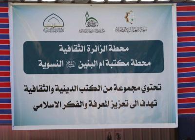 أعلنت مكتبة أم البنين (عليها السلام) في العتبة العباسية المقدسة افتتاح مواقع جديدة في الطرق المؤدية إلى كربلاء؛ لتقديم خدمات دينية ومعرفية وثقافية لزائرات الأربعين.