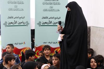 Şube sorumlusu Fatıma el-Musavi şöyle dedi: "Şubemiz, tebliğ, dini ve kültürel hizmetler de dahil olmak üzere çeşitli hizmet ve etkinlikler sunmaya devam ediyor. Ayrıca, mübarek Erbain ziyaretine katılmak için Kerbela şehrine aileleriyle gelen çocuklara yönelik programlar da düzenliyoruz."