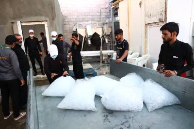 وأضاف أنّ "مجمع أبي الفضل العباس (عليه السلام) الواقع في محور (النجف-كربلاء) يضمّ معملين لإنتاج الثلج، أحدهما مخصّص لإنتاج قوالب الثلج الاعتيادي بأكثر من 26 طنًا يوميًّا، والآخر لإنتاج الثلج البلوري بواقع 70 طنًّا يوميًّا"، لافتًا إلى أنّ "أكثر من 650 موكبًا خدميًّا استفادوا من هذه الخدمات خلال أربعة أيام فقط".