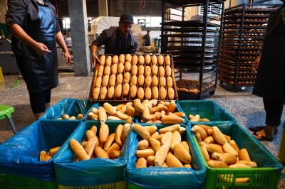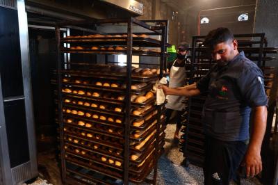 وأضاف أنّ "الأفران بدأت في العمل منذ الأيام الأولى للزيارة، وبلغ إنتاجها نحو 15 ألف قطعة صمون، وارتفع الإنتاج مع ازدياد أعداد الزائرين إلى أكثر من 25 ألف قطعة، تُوزع في أثناء وجبات الطعام الرئيسة، إضافة إلى الوجبات البينية".
