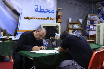وقال السيد فراس عبد الأمير أحد ملاكات المركز التابع للمجمع، إنّ "المشاركة في مشروع كتابة المصحف الشريف قد تزايد الإقبال عليه عامًا بعد عام، إذ نستقبل في الموكب نحو 250 زائرًا يوميًّا لكتابة آيات من القرآن الكريم على مصحف مُصمم بتقنية تجعل الكلمات الأصلية مرئية بشكلٍ مائيّ خفيف".