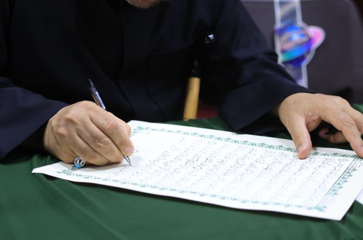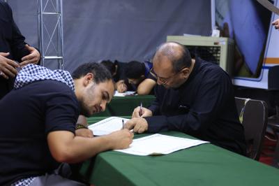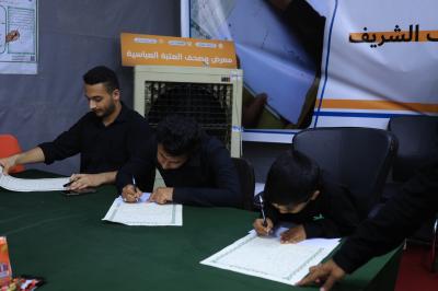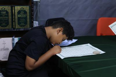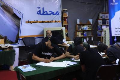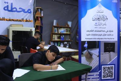 يواصل الموكب الثقافي العام الذي تقيمه العتبة العباسية المقدسة، كتابة المصحف الشريف بأيدي الزائرين، وبمشاركة 250 زائرًا يوميًّا.