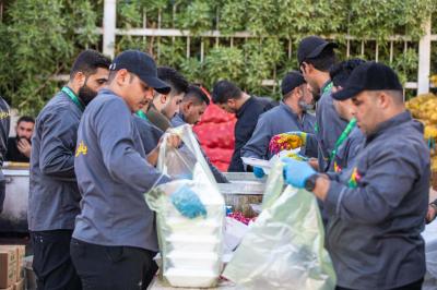 يشارك أكثر من 400 متطوع في تقديم الخدمات لزائري الأربعين، ضمن مجمّع أبي الفضل العباس(عليه السلام) التابع للعتبة العباسية على طريق النجف/ كربلاء.