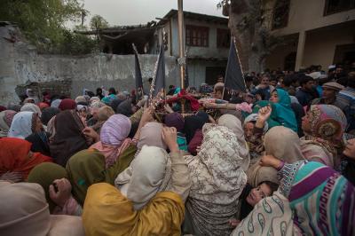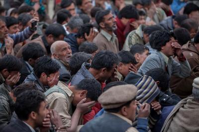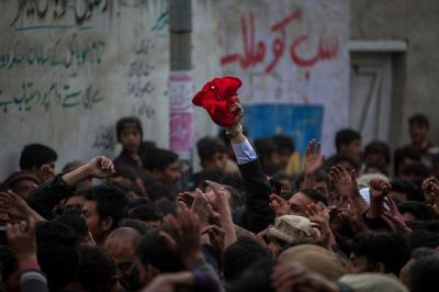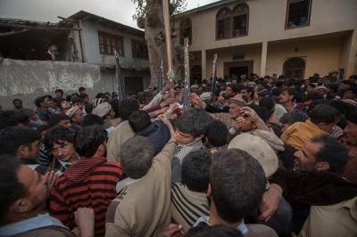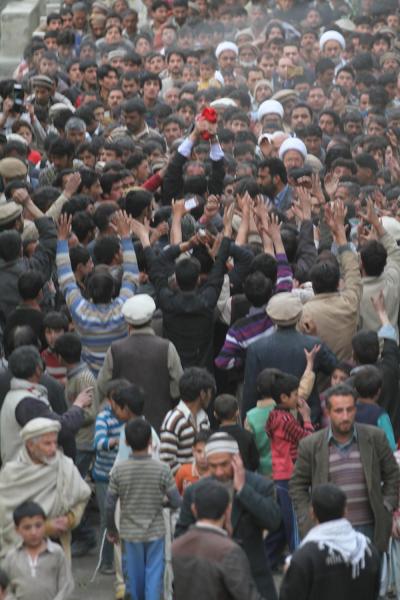 Once the delegation arrived, voices mixed with tears all of them saying "labbayka ya Hussayn), the delegation had then to walk amidst a great crowd, carrying the banner of Imam Al-Hussayn (peace be upon him) to be raised on a pole prepared for this purpose in the centre of the city. the believers rushed to win the honour of getting its blessings.