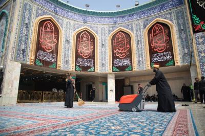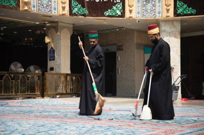 Eş-Şami ekledi: "Şubemiz çeşitli hizmetler sunuyor. Bunlar arasında matem alaylarının geçişini düzenlemeye katılmak, esas avlu içinde ziyaretçilerin hareketini düzenlemek, 24 saat boyunca esas avlunun temizliğini ve taharet durumunu korumak, taziye alaylarının geçişi sırasında avlunun örtülerini kaldırmak ve taziye törenlerinin bitiminden sonra cemaat namazı için tekrar sermek yer alıyor."
