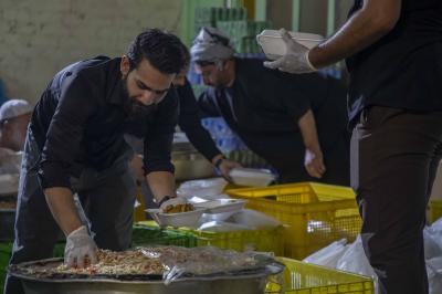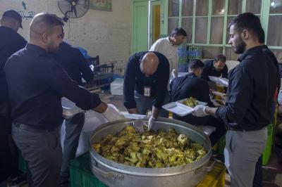 Mukaddes Hz. Abbas'ın (a.s.) Türbesi'nin Beynel Haremeyn-i Şerîfeyn Bölümü, Misafirhane Bölümü ile işbirliği içinde, son zamanlarda Erbain ziyaretini eda etmek için gelen yabancı ziyaretçilere sunulmak üzere Hüseyniyeler ve matem alaylarına yemek dağıtımına devam ettiğini doğruladı.
