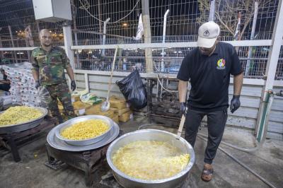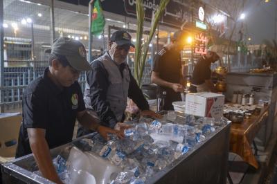 Le responsable du cortège de service de la fanfare, M. Hussein Amer, a déclaré : « La procession de la division Al Abbas a commencé, comme d'habitude, en fournissant des repas et de l'eau fraîche aux honorables visiteurs il y a trois jours », indiquant que « la procession, conformément aux sous la direction de la direction de la division, a travaillé à diversifier les repas offerts aux visiteurs en mémoire du martyre du Grand Prophète (que les prières et la paix de Dieu soient sur lui et sur sa famille.)