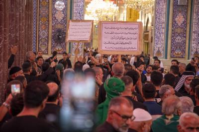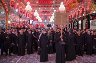الاسدی افرود: این دسته از باب القبله به سمت حرم مطهر ایشان حرکت کرد و در طول مسیر عزاداران به مرثیه خوانی پرداختند.