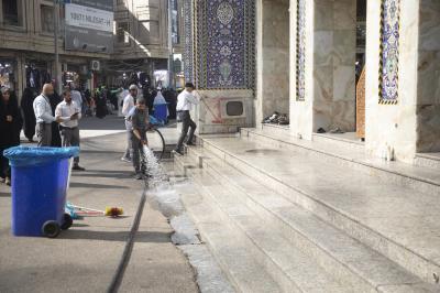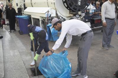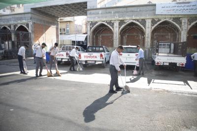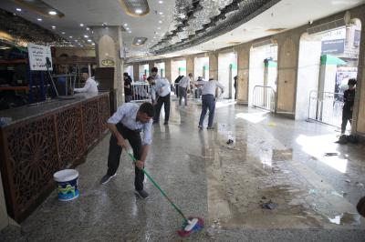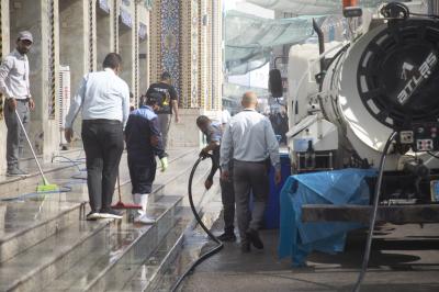 Les travaux comprenaient le lavage de la porte de la Qibla, des environs du sanctuaire sacré et de certaines routes menant au sanctuaire pur, ainsi que la vidange et le lavage des conteneurs à déchets.