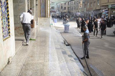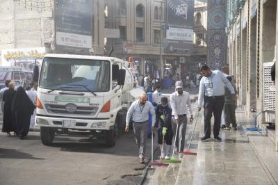 Le Département des affaires militaires du sanctuaire sacré d'Al-Abbas (p) a mené une campagne de nettoyage dans le cadre de son travail régulier autour du sanctuaire d'Aba al-Fadl al-Abbas (que la paix soit sur lui).