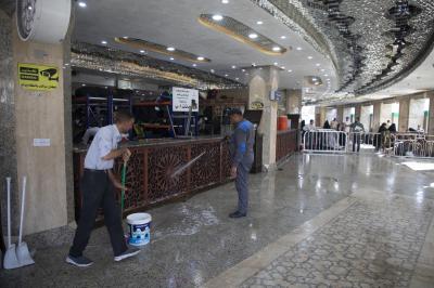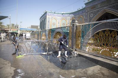 La campagne de nettoyage s'inscrit dans le cadre des efforts continus du personnel du département après la fin de la ziyarat de l'Arbaeen de l'Imam Al Hussein (que la paix soit sur lui) et la commémoration du martyre du Noble Prophète Muhammad (Prière et paix sur lui et sur sa lignée vertueuse), pour offrir un environnement et une atmosphère adaptés aux visiteurs, et recevoir des événements religieux et culturels dans les prochains jours.