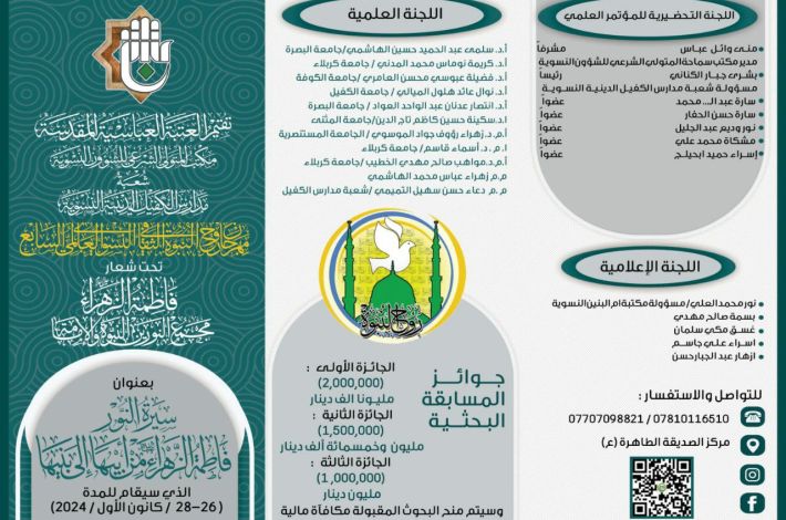 ويُقام المهرجان خلال المدّة من 26 إلى 28 كانون الأوّل 2024م، ويركز على دراسة سيرة السيدة فاطمة الزهراء(عليها السلام) ضمن محاور بحثية محدّدة.