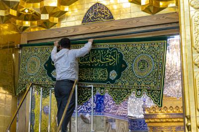 The Al-Abbas's(p) holy shrine has started replacing the black-colored curtains of the doors of the holy sanctuary of Aba al-Fadl al-Abbas (Peace be upon him) after the end of Muharram and Safar months with new green curtains.