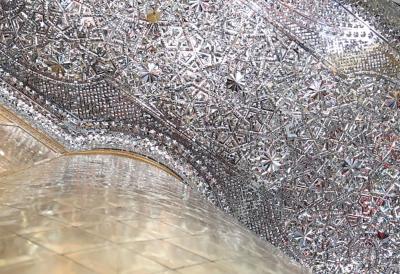 وأضاف، أنّ "مساحة الأعمال المتبقّية فقط 50 متراً مربّعاً، ويتمّ فيها تركيب قطع المرايا وفق أشكالٍ هندسية مطابقة للتصميم وبأيادٍ عراقية، وباستخدام مرايا ذات كفاءة عالية ومن مناشئ عالمية".