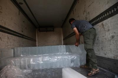وأضاف أن القسم يوزّع أكثر من 400 قالب ثلج يوميًا على هذه المواكب، إضافة إلى آلاف الصناديق من مياه الشرب".