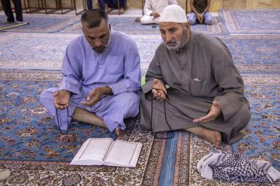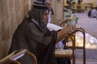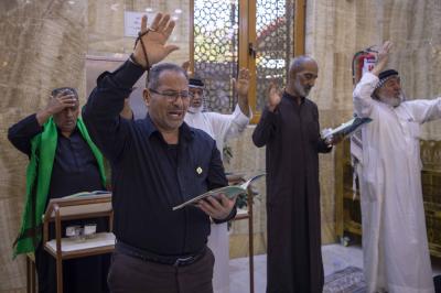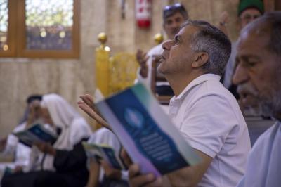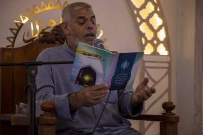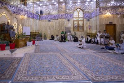 La cérémonie de lecture de la prière bénie de la cicatrice se déroule dans une atmosphère d'adoration et de foi remplie des bénédictions de celui à qui la prière a été attribuée, avec la participation de nombreux visiteurs de ce lieu pur.