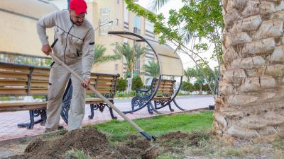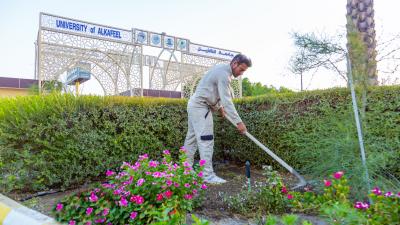 باشرت ملاكات شعبة الزراعة في جامعة الكفيل، بأعمال تأهيل المساحات الخضراء، استعدادًا لاستقبال العام الدراسيّ الجديد.