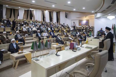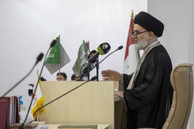 "Değerli hazırun... Faziletli âlimler.. Muhterem efendiler.. Allah'ın selamı, rahmeti ve bereketi üzerinize olsun. Sizi selamlıyor ve bu mübarek mekânda, Mukaddes Hz. Abbas'ın (a.s.) Türbesi'nde sizleri ağırlamaktan memnuniyet duyuyorum. Allah Tebareke ve Teala'dan, tertemiz İmamların (a.s.) mirasını, erdemli âlimlerin mirası aracılığıyla ihya etmek için topluluğumuzu çoğaltmasını diliyoruz.