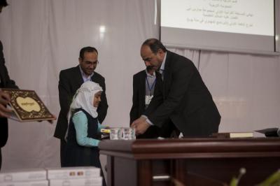 استُهِلّ الحفلُ الذي أُقيم بواقع جلستين صباحية ومسائية بتلاوة آياتٍ من الذكر الحكيم بصوت القارئ مصطفى الحمدان وقراءة سورة الفاتحة على أرواح شهداء العراق الذين رووا بدمائهم الزكية أرضه الطاهرة لصدّ هجمة العصابات التكفيرية المجرمة المتمثّلة بداعش، لتأتي بعدها كلمةُ رئيس قسم التربية والتعليم العالي الدكتور عباس رشيد الددة والتي بيّن فيها: "ما ألذّ أن نجتمع في المنزل الرفيع حول مائدة القرآن الكريم، فهو أشرف مجالٍ وأعظم ميدان به ننتفع ونحظى بأرفع الدرجات، هذه قناعة كانت وراء تأهيل مدخلات مدارسنا لخلق مخرجات مؤهّلة مؤثّرة في بثّ رسالة تربوية موثوق بها، لأنّها ستكون متناغمة فكراً وسلوكاً متخلّقةً بأخلاق القرآن مهتديةً بهديه في زمنٍ نواجه فيه تحدّياتٍ خطيرة، حيث بدأنا الخطوة الأولى في تشجيع تلاميذنا على حفظ القرآن الكريم ومعرفة معانيه وأحكام تلاوته لترسيخه في عقولهم وأفئدتهم ليحملوه فكراً ويترجموه سلوكاً، لما تمتاز به هذه الفئات العمرية من سهولة الحفظ وقدرة على الاستيعاب السريع والتذكر واستدعاء المعلومة".