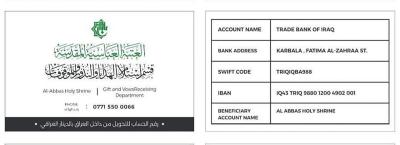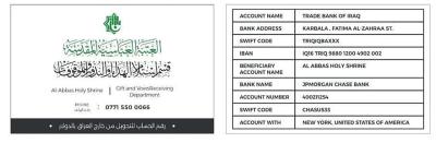 آستان قدس عباسی شماره حسابهای تخصیص یافته جهت جمع آوری هدایای مادی برای ملت لبنان در نتیجه حملات وحشیانه رژیم صهیونیستی علیه آنها را اعلام کرد.