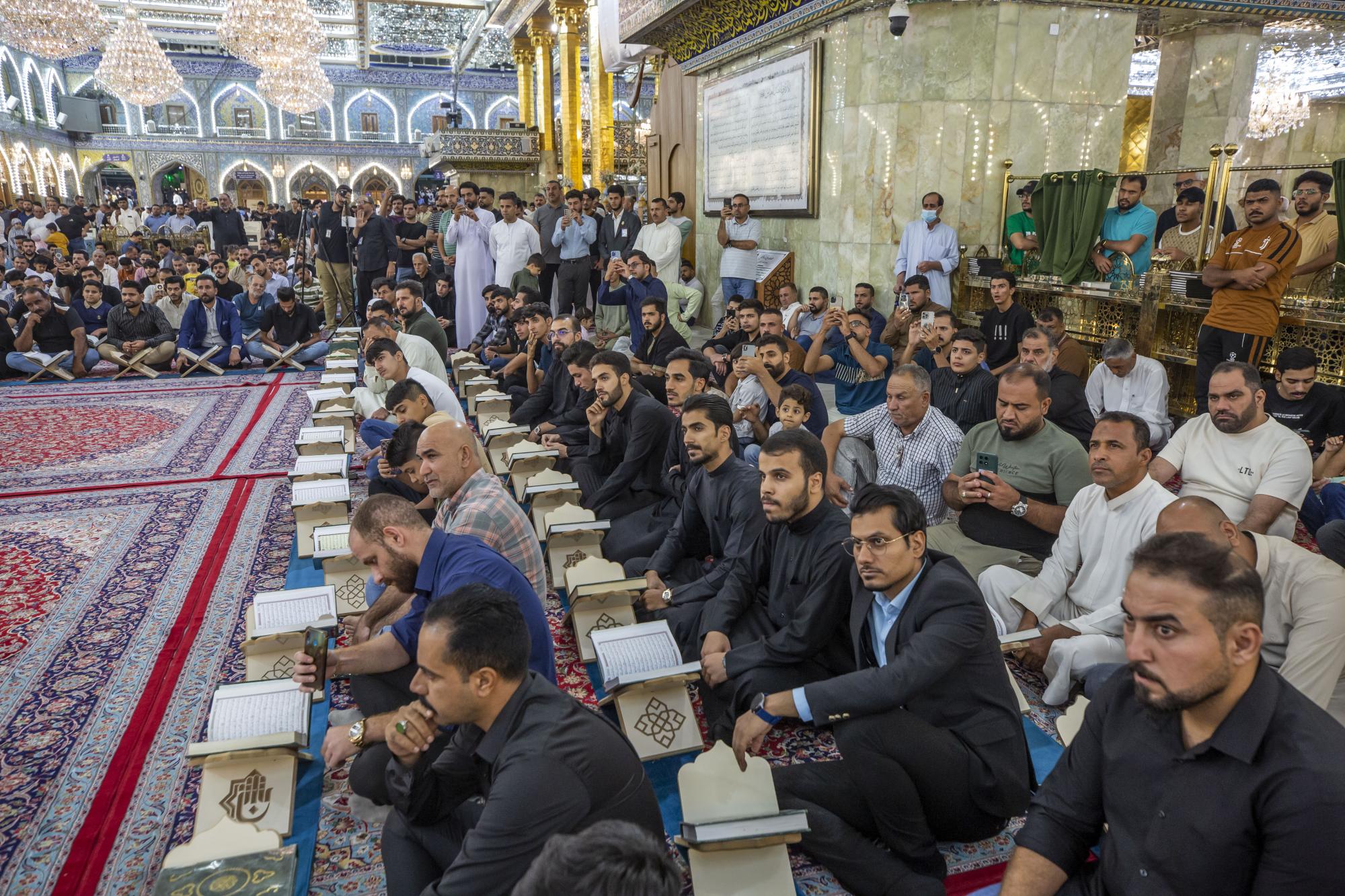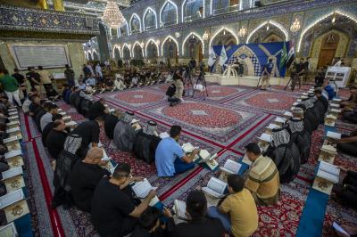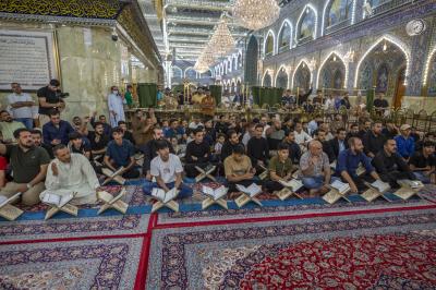 وقال أحد ملاكات المركز السيد محمد باقر علاء، إنَّ "المجمَع العلمي للقرآن الكريم في العتبة المقدّسة، نظّم محفل عرش التلاوة في صحن أبي الفضل العباس(عليه السلام)، بمشاركة وفد تجمّع دار القرآن الكريم في قضاء النصر بمحافظة ذي قار".