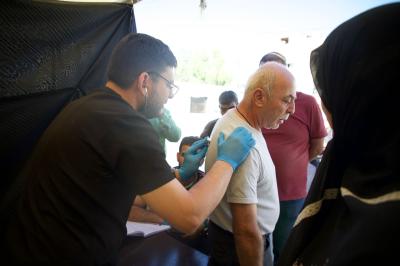 باشر وفد من العتبة العباسية المقدسة في سوريا، تقديم الخدمات الطبية للنازحين اللبنانيين عَبرَ مستشفى ميداني خاص.