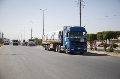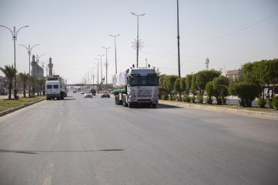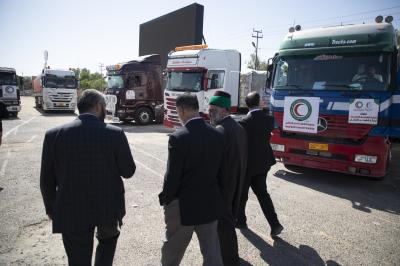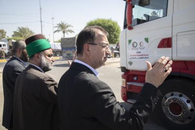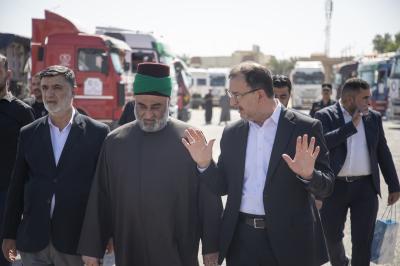 Konvoy, Hz. Abbas (a.s.) Türbesi'nin Genel Sekreteri Seyyid Mustafa Murtaza Âl-i Ziyauddin, Yardım Komitesi Başkanı Seyyid Muhammed el-Uşeykar ve Şer'i Mütevelli Ofisi Müdürü Seyyid Efdal eş-Şami'nin denetiminin ardından Mukaddes Kerbela şehrinden yola çıktı.