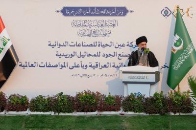 During his speech at the opening of the Al-Joud intravenous solutions factory in Karbala governorate, Sayed Al-Safi said, "We cannot fail to mention that the world is going through some crises today, especially in our beloved Palestine and dear Lebanon, because these two countries are being subjected to brutal cruelty by the enemy, this arrogant entity that caused thousands of injuries, we decided to donate-perhaps this is our duty-some of the solutions already available from the factory's production, especially there is a need for sodium chloride solution as well as for the solution of glucose.".