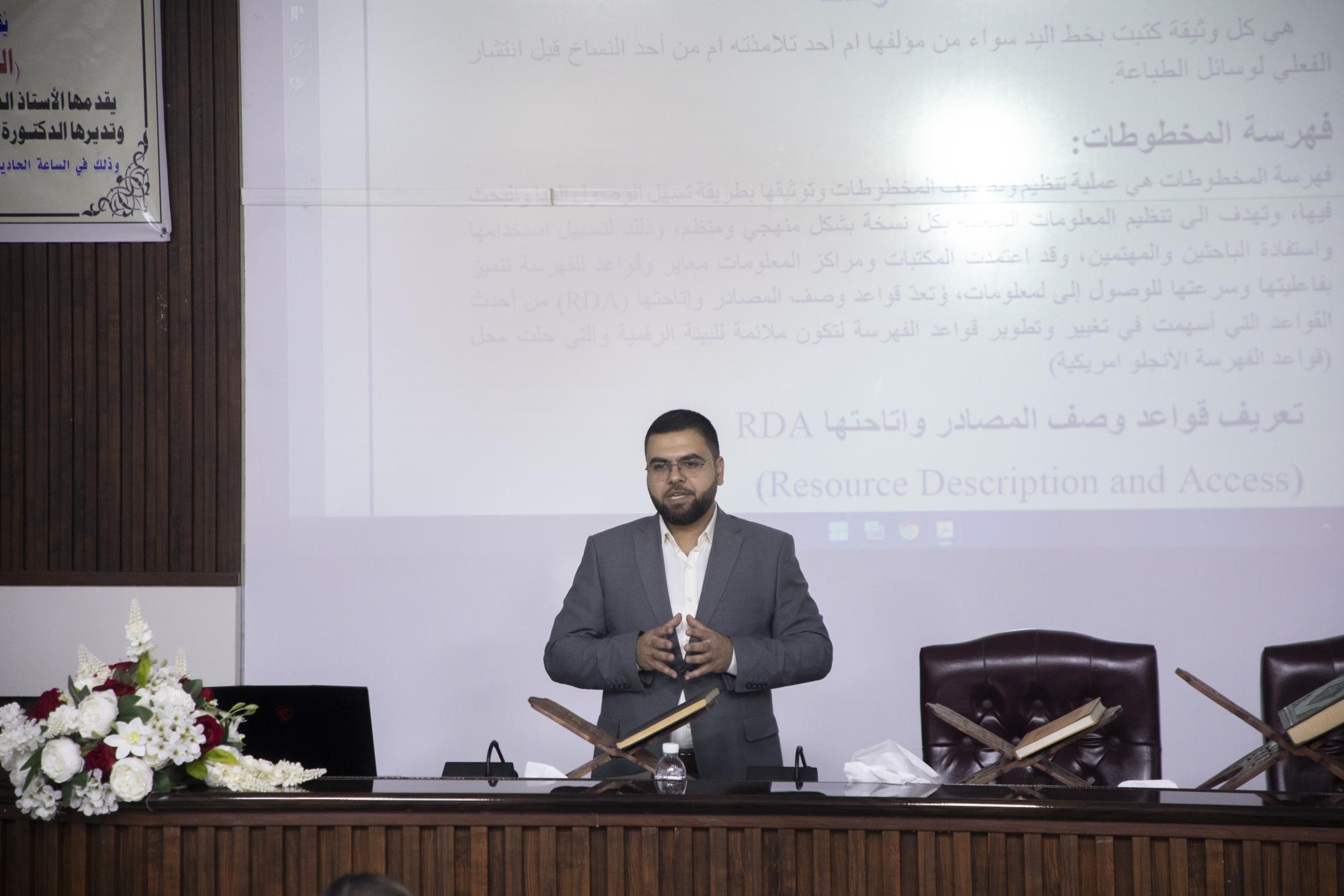 وقال السيد علي طالب من مركز الفهرسة ونظم المعلومات التابع للقسم: إنّ "وحدة الفهرسة الموضوعية في المركز نظّمت دورة تخصصية في فهرسة المخطوطات وفقا لقواعد RDA و Mark 21 العالمي في هذا المجال، لملاكات المَجمَع العلمي العراقي".