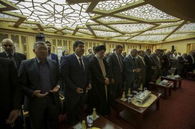 La cérémonie s'ouvre avec la lecture de quelques versets du saint Coran en présence du secrétaire général, des responsables et le représentant du ministre irakien des communications , suivie par l'hymne national et le nachide du saint sanctuaire.
