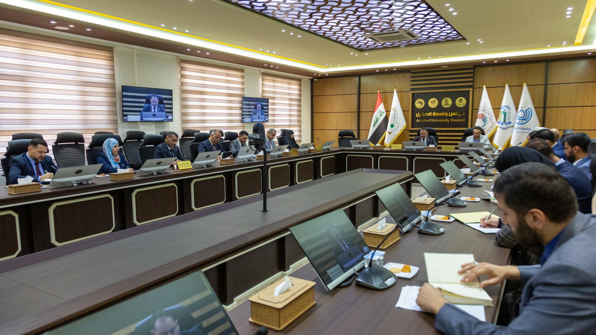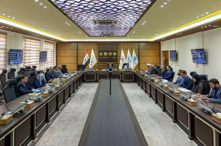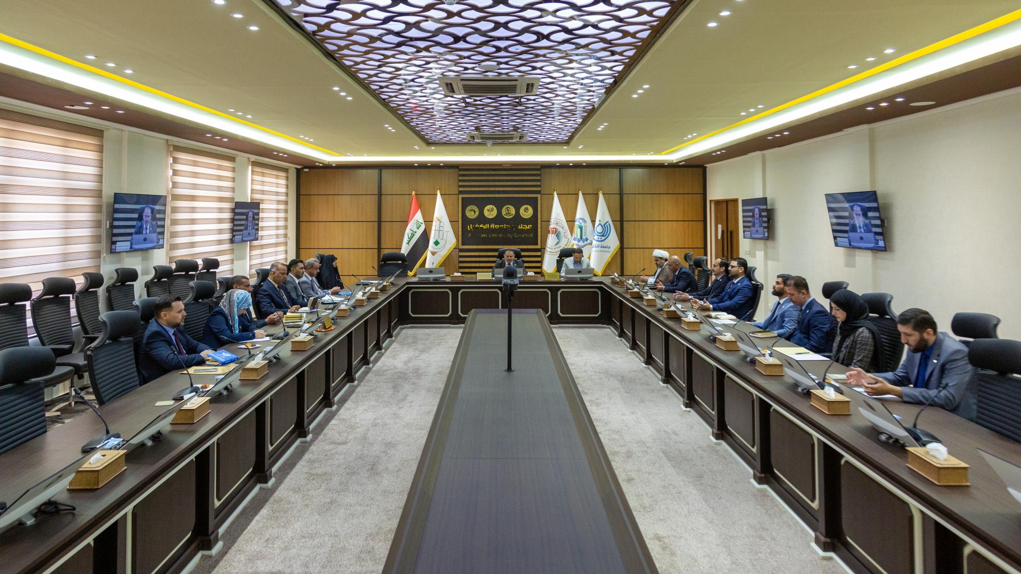 وعُقد الاجتماع بحضور رئيس الجامعة، الدكتور نورس محمد شهيد الدهان، والمساعد العلمي الدكتورة نوال عائد الميالي، وعمداء الكليات ومعاونيهم.